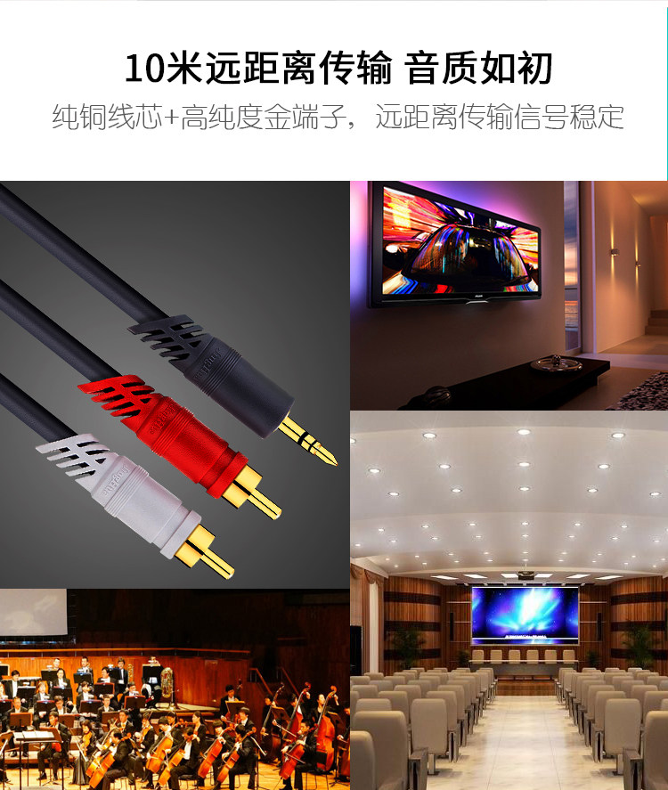 晶华音频线3.5头对2莲花线